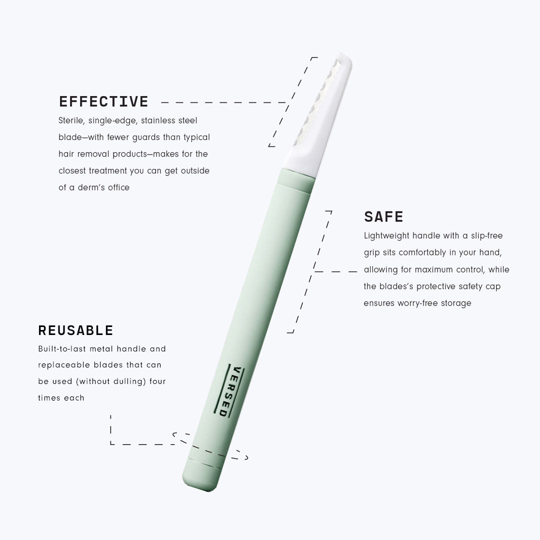 A refill 3-pack blades for our At-Home Dermaplaning Tool, which delivers brighter, smoother skin in just one use. These stainless steel, single-edge dermaplaning blades provide the closest, safest exfoliation you can get outside an office and last for 4 uses. Use along with Instant Gratification At-Home Dermaplaning Tool—no batteries required—to remove dead skin cells and facial hair (which, no, won’t grow back thicker) seamlessly and painlessly. You’ll notice a more even-toned, softer complexion instantly and every other product in your regimen will work more effectively (including a more flawless, less splotchy makeup application).
