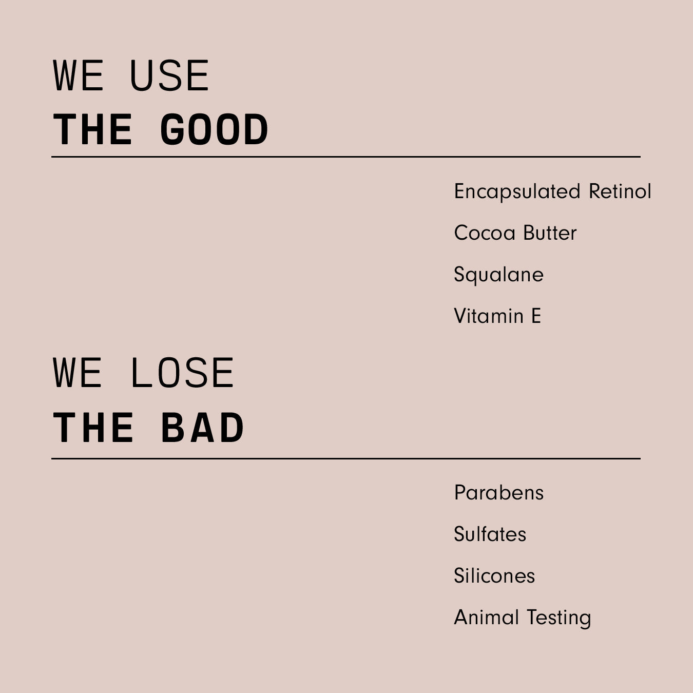 With pure retinol, nourishing cocoa butter, and moisture-replenishing squalane, this body lotion repairs more than dryness. It helps firm skin, smooth texture, brighten dullness, and even treat body breakouts (including the dark spots they leave behind). Encapsulated retinol gently renews skin, while the moisture-locking ingredients relieve dryness. The lightweight formula won’t leave you feeling greasy, but it will deliver the retinol results you love for your face everywhere else. Massage into dry skin to help refine crepiness on the chest, firm skin around the knees, smooth rough elbows, and leave you radiant from shoulders to toes.